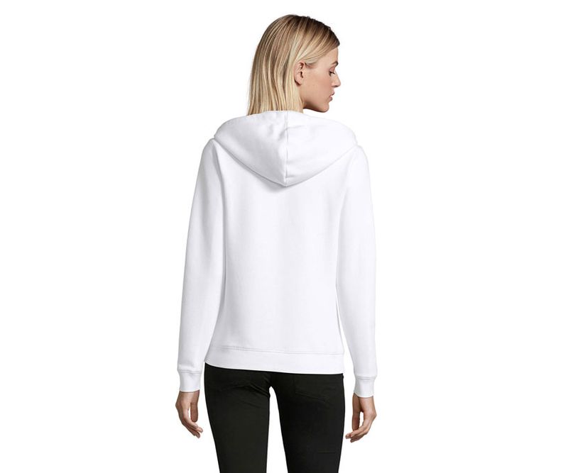 SOL'S SPIKE FEMEI. Hanorac cu gluga si fermoar pentru femei, 80% bumbac inelar filat - 20% poliester Captuseala periat, Exterior: 100% bumbac FLEECE 280 LSF (Low Shrinkage Fabric), Maneci cu fermoar, 2 buzunare fata, Taiate si cusute, Gluga captusita cu cordon de tragere ton pe ton, mansete si tiv cu nervuri 2x2. Guler interior in forma de semiluna, Gat cu banda adeziva, fermoar YKK. OEKO-TEX®. Vandut doar cu personalizare.