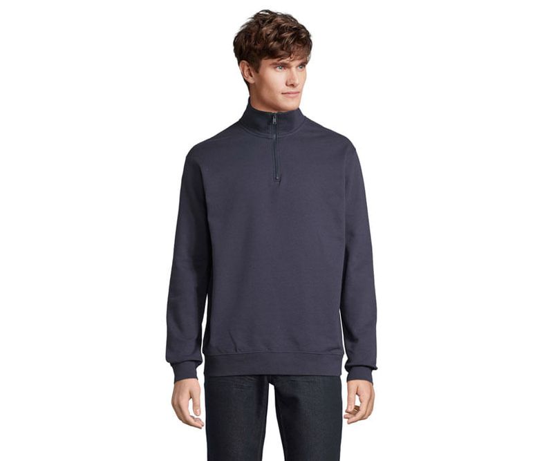 SOL'S CONRAD, Hanorac cu 1/4 fermoar cu guler inalt 80% Bumbac - 20% Poliester reciclat certificat Grs maneci cu insertie, taiate si cusute, mansete si partea inferioara cu nervuri 1X1, 1/4 fermoar cu guler inalt, fermoar din plastic injectat in ton cu ton cu ton cu fermoar metalic, semiluna din Jersey si banda de gat in interiorul gulerului (1) Grey Melange : 73% Bumbac / 20% Poliester reciclat / 7% Viscoza