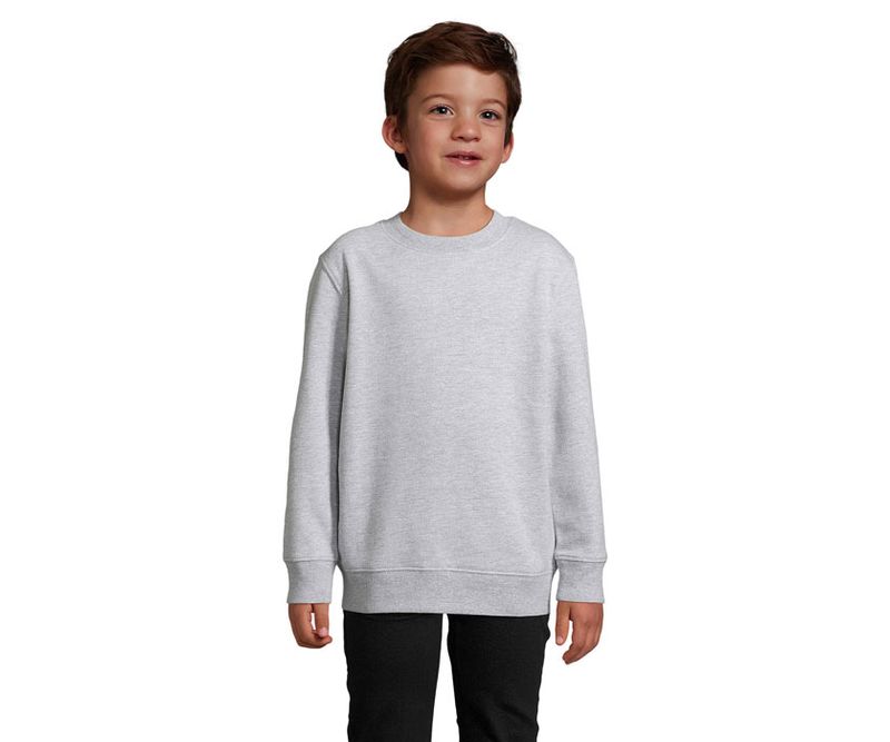 SOL'S COLUMBIA KIDS, t 80% Bumbac - 20% Poliester reciclat certificat Grs Gat rotund, maneci cu insertie, taiate si cusute, mansete, gat si partea de jos a gatului cu nervuri 1X1, semiluna Jersey si banda de gat in interiorul gulerului, croiala lejera (1) Grey Melange : 73% Bumbac / 20% Poliester reciclat / 7% Viscose. Pentru potrivirea marimilor, va rugam sa consultati tabelul de marimi din sectiunea de documentatie a produsului.
