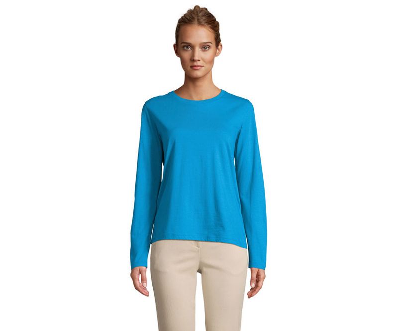 SOL'S MONARCH WOMEN TEE SHIRT, tricou pentru femei cu maneca lunga si gat rotund, 100% bumbac semi-combinat ringspun, croiala tubulara confortabila, banda la gat, gat rotund canelat cu elastan. Despre potrivirea marimilor, va rugam sa consultati tabelul de marimi din sectiunea de documentatie a produsului.