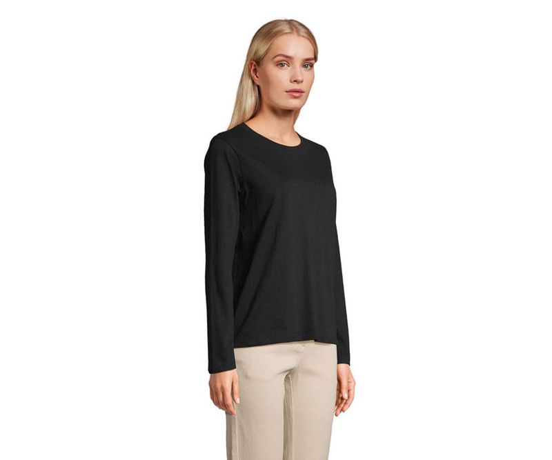 SOL'S MONARCH WOMEN TEE SHIRT, tricou pentru femei cu maneca lunga si gat rotund, 100% bumbac semi-combinat ringspun, croiala tubulara confortabila, banda la gat, gat rotund canelat cu elastan. Despre potrivirea marimilor, va rugam sa consultati tabelul de marimi din sectiunea de documentatie a produsului.