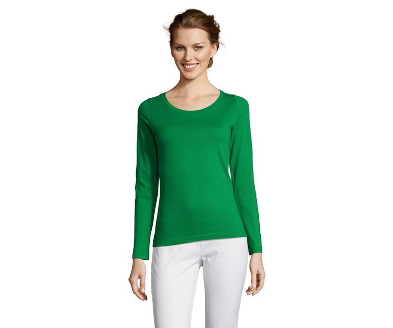 SOL'S MAJESTIC long-sleeved women's top/T-shirt 150g/m². Bluza pentru femei cu maneca lunga si decolteu rotund. Banda la baza gatului din material reiat, mansete drepte, confectionat din material tubular Detalii material: single jersey 150gr / mp, 100% bumbac ringspun semi-pieptanat. OEKO-TEX®. Marimi: S -XXL