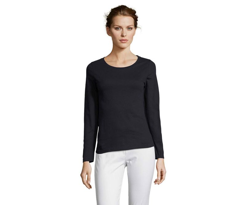 SOL'S MAJESTIC long-sleeved women's top/T-shirt 150g/m². Bluza pentru femei cu maneca lunga si decolteu rotund. Banda la baza gatului din material reiat, mansete drepte, confectionat din material tubular Detalii material: single jersey 150gr / mp, 100% bumbac ringspun semi-pieptanat. OEKO-TEX®. Marimi: S -XXL