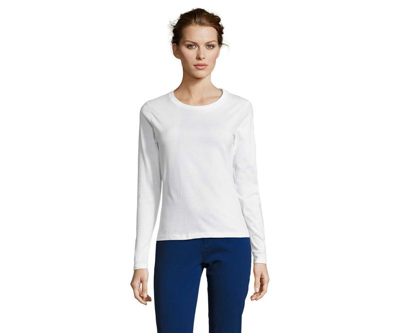 SOL'S MAJESTIC long-sleeved women's top/T-shirt 150g/m². Bluza pentru femei cu maneca lunga si decolteu rotund. Banda la baza gatului din material reiat, mansete drepte, confectionat din material tubular Detalii material: single jersey 150gr / mp, 100% bumbac ringspun semi-pieptanat. OEKO-TEX®. Marimi: S -XXL