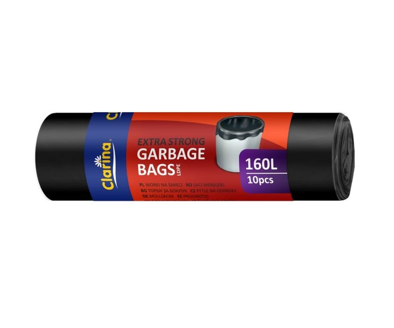 sacii menajeri Clarina Extra Strong 160L! Proiectați special pentru gestionarea deșeurilor voluminoase și grele, acești saci sunt fabricați din