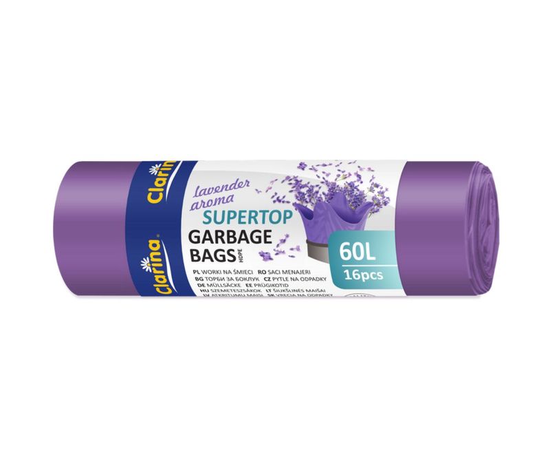 sacii menajeri Clarina Supertop Parfum Lavandă 60L – combinația ideală între
