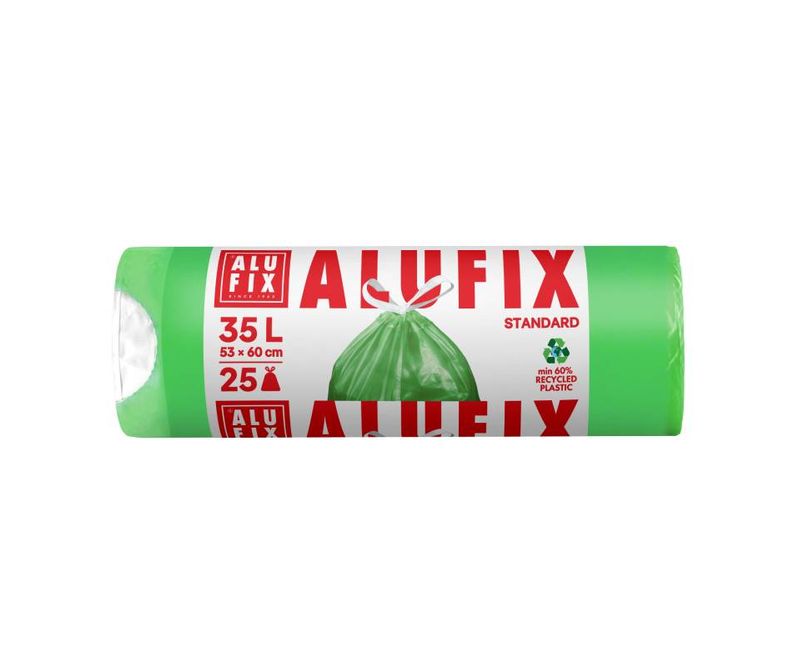 Sacii menajeri ALUFIX HDPE cu șnur sunt potriviti pentru strângerea, manipularea și transportul ușor al resturilor menajere.Sacii sunt prevazuti cu un snur pentru inchiderea, manevrarea, transportarea si depozitarea mai facila a resturilor.