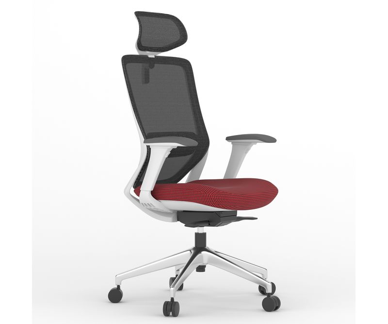 Scaun de birou cu spătar mesh, cadru light grey, baza aluminiu, brațe 4D, suport lombar reglabil, tetiera reglabilă, mecanism sincron autoreglabil, translație șezut. Certificări: EN 1335 și BIFMA X5.1