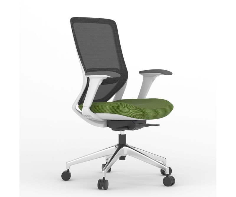 Scaun de birou cu spătar mesh, cadru light grey, baza aluminiu, brațe 4D, suport lombar reglabil, mecanism syncron autoreglabil, translație șezut Certificări: EN 1335 și BIFMA X5.1