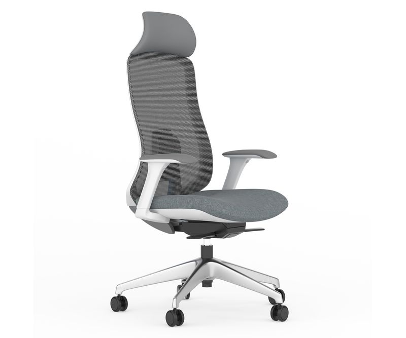 Scaun de birou cu spătar mesh, cadru light grey, baza aluminiu, brațe 4D, suport lombar reglabil, tetiera reglabilă, mecanism syncron autoreglabil, translație șezut Certificări: EN 1335 și BIFMA X5.1