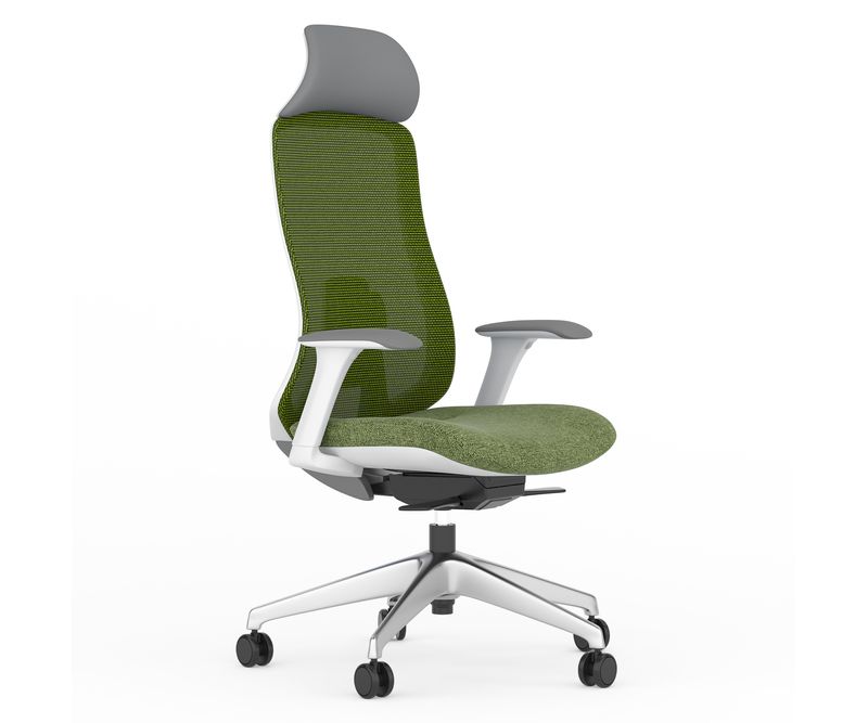 Scaun de birou cu spătar mesh, cadru light grey, baza aluminiu, brațe 4D, suport lombar reglabil, tetiera reglabilă, mecanism syncron autoreglabil, translație șezut Certificări: EN 1335 și BIFMA X5.1