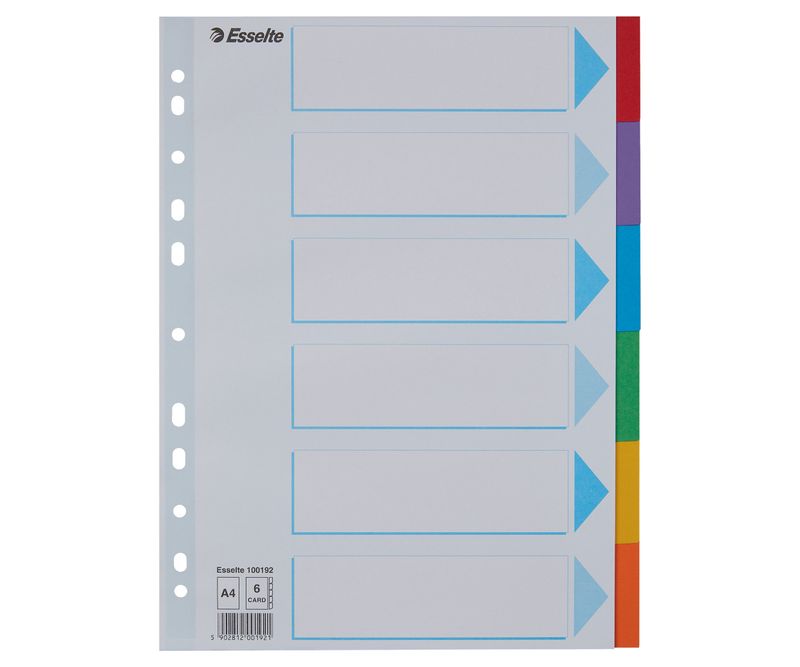 6 separatoare colorate pentru organizarea sistematică a documentelor și sortare rapidă.
