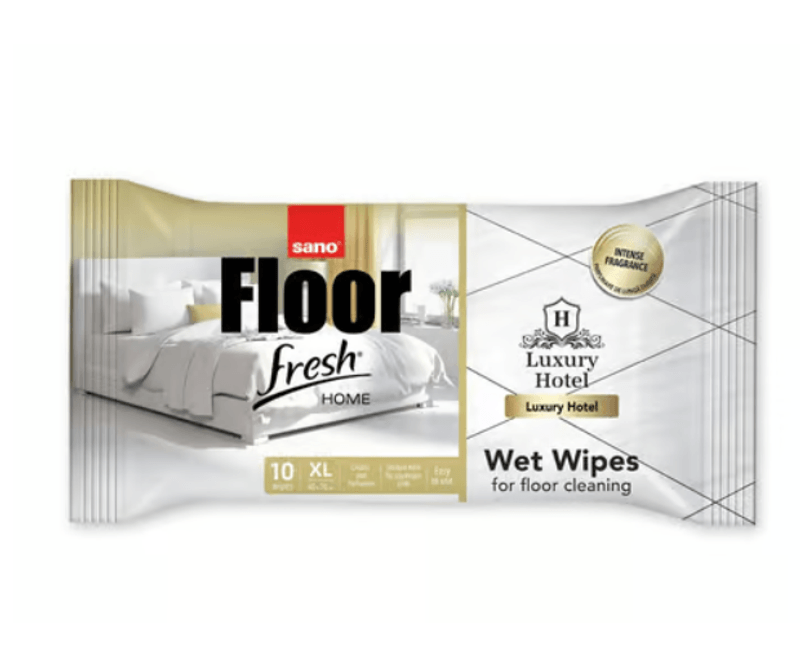 Servețel mare, bogat îmbibat cu solutia special Sano Floor Fresh Home Luxury Hotel Ideal pentru zone speciale sau greu accesibile pentru mop Varianta rapidă pentru curățat pardoselile Pentru pardoseli curate si intens parfumate!