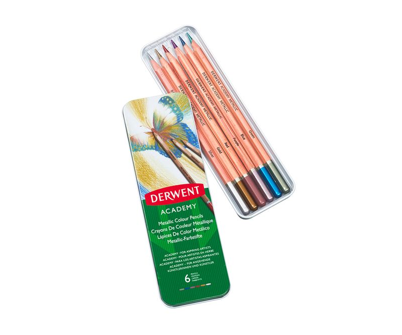 Avand rezultate deosebite, creioanele in culori metalice Derwent Academy, largesc orizontul posibilitatilor creative artistilor si pasionatilor. Nuantele metalizate confera tonuri stralucitoare atunci cand sunt utilizate pe un fundal intunecat, iar pigmentii solubili in apa se amesteca perfect pentru a crea efecte vii, izbitoare.