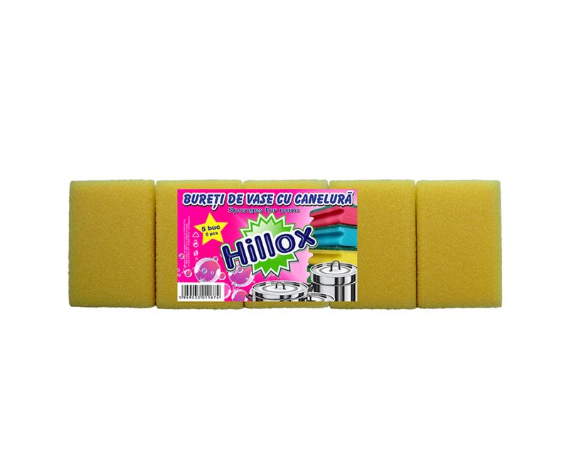 Set de 5 bureti de vase Hillox cu canelura. Sunt destinati pentru spalarea vaselor din bucatariile restaurantelor, a cantinelor sau chiar a uzului casnic.