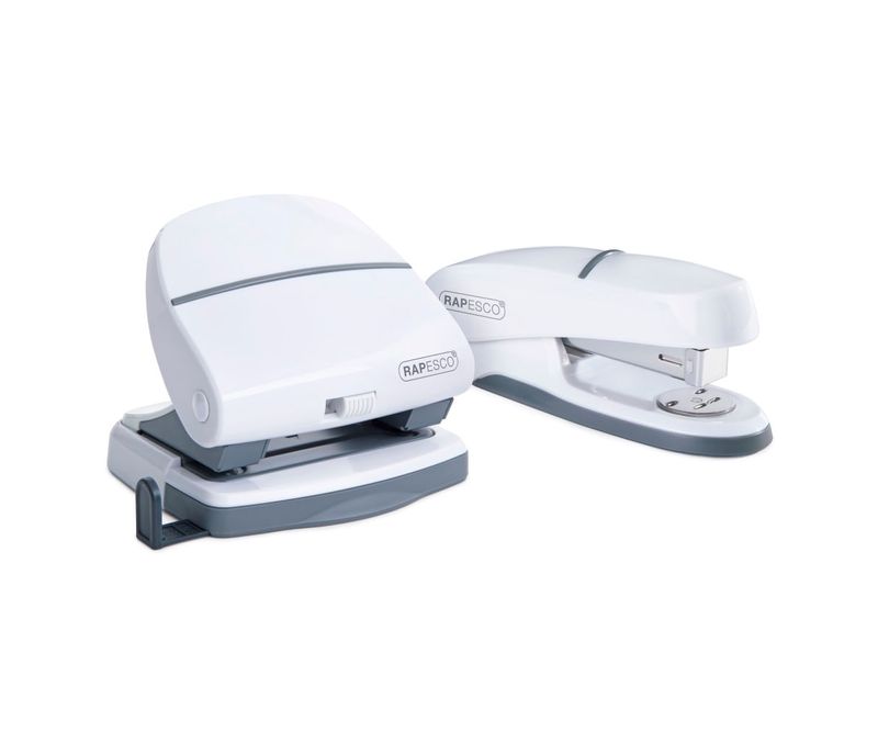 Set perforator alb 2 perforatii 30 coli si capsator alb plastic 24/6 20 coli Rapesco