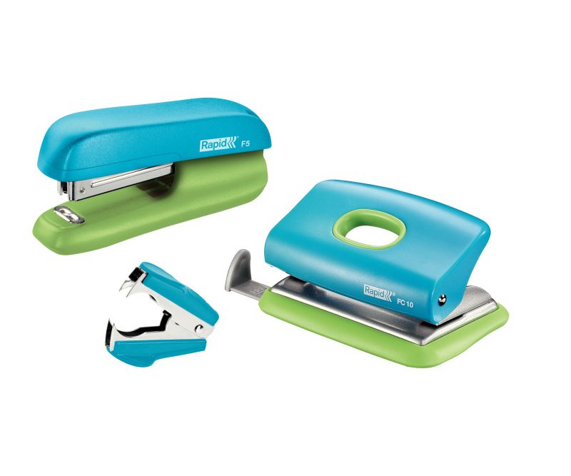 🔹 Set capsator Rapid F5, perforator FC10 și decapsator, 10 coli, albastru-verde