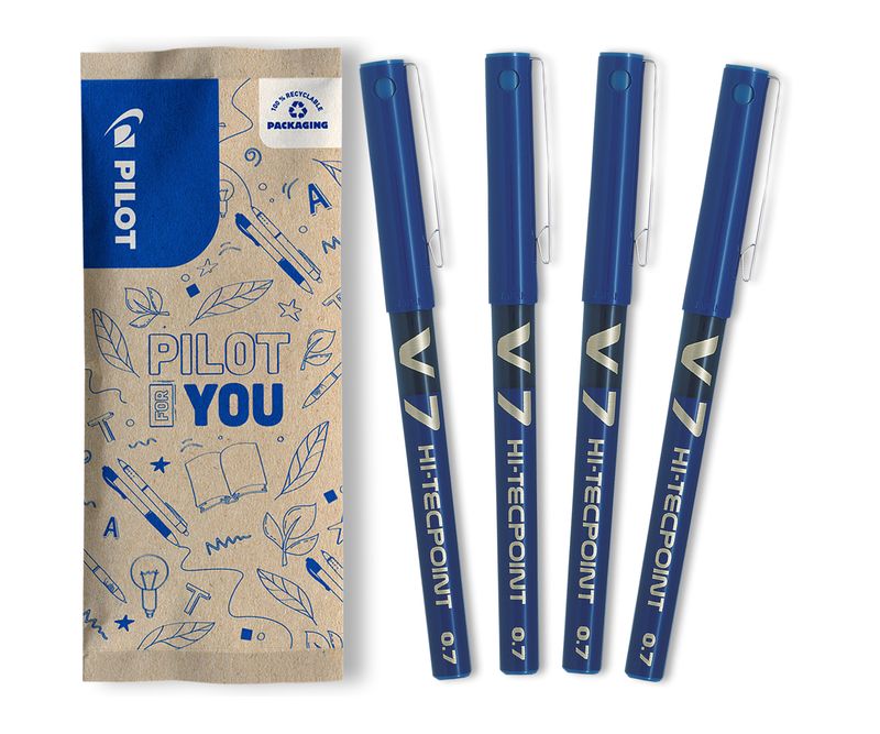 Set flow pack 4 x rollere Pilot V7 Hi-Tecpoint, 0.7mm, albastru