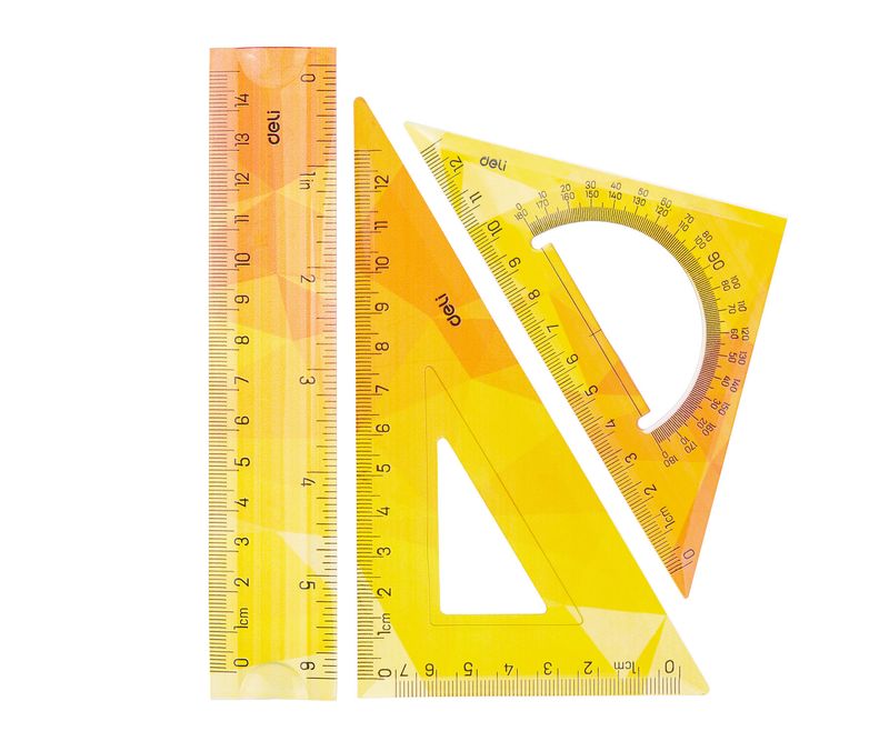 Set de geometrie cu 3 piese din material plastic, multicolor. Setul contine o rigla de 15 cm, 2 echere (13 cm 45/45/90, 13 cm 30/60/90). Gradatie in inch si cm.
