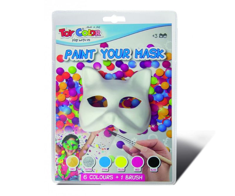 Conține o mască alba, 6 culori tempera și o pensulă.