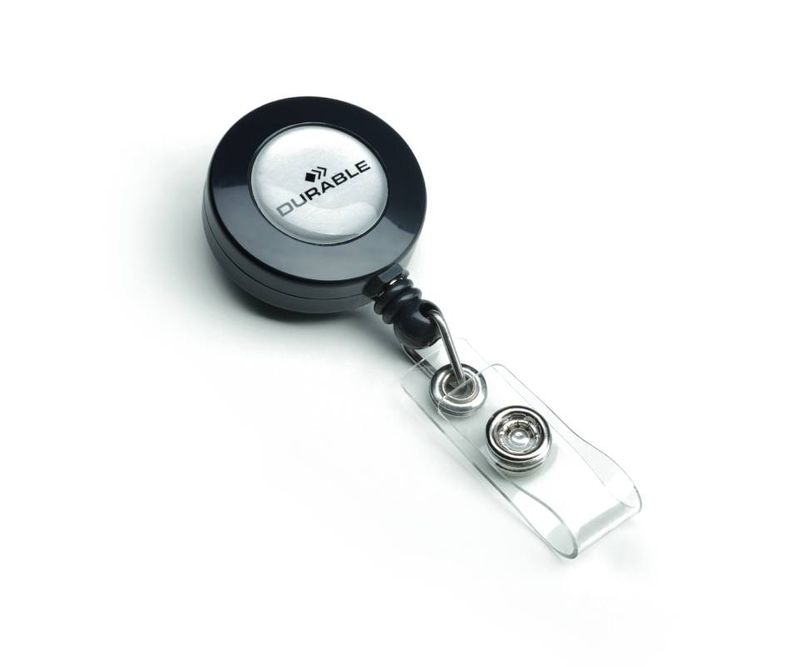 Snur retractabil Durable 80 cm clip tambur gri/negru 10 bucati/set