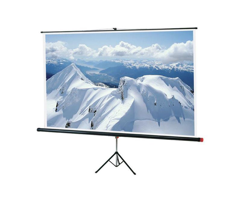 Ecran de proiectie cu trepied Sopar, Junior, format 1:1, suprafata de proiectie 125x125 cm, diagonala 80 inch, unghi de vizionare 150°, tip panza alba (fata) neagra (spate), din fier lacuit