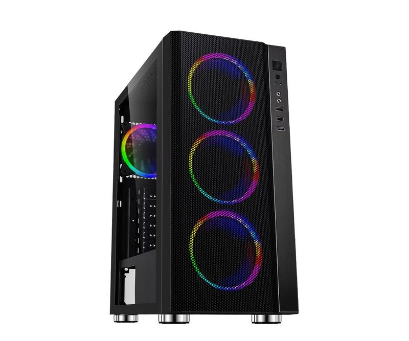 Carcasa Spacer Rainbow, ATX, MidTower, Gaming, fara sursa, sticla securizata, 4 x fan, USB 2.0 x 2, USB 3.0 x 1, mesh, fan controller (inclusiv RGB), telecomanda, „SPCS-GC-RAINBOW”