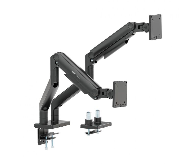 Suport 2 monitoare Serioux MM74-C024, tehnologie arc, compatibilitate dimensiune ecran 17-45, greutate maxima suportata: (per ecran): 20Kg, VESA: 75x75, 100x100, inclinare: +50°~-20°, pivotare: +90°~-90°