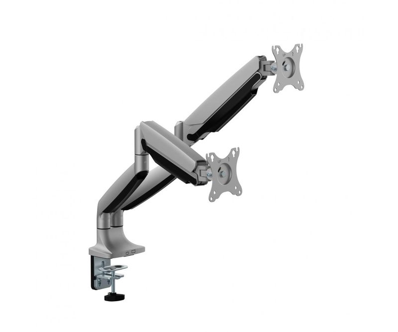 Suport 2 monitoare Serioux MM82-C024, tehnologie arc cu gaz, compatibilitate dimensiune ecran 17-35, greutate maxima suportata: (per ecran): 1~16kg, greutate maxima suportata pentru ecran curbat (per ecran): 1 ~ 13 kg, VESA: 75x75, 100x100, inclinare: +90°~-90°, pivotare: +90°~-90°, rotatia ecranului: +180°~-180°, instalare: clema, grommet, grosime recomandata pentru birou: clema: 10~80mm grommet: 10~40mm, management cabluri