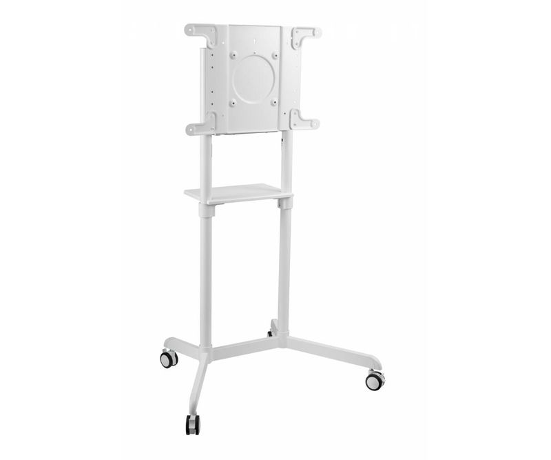 Stand TV mobil Serioux TV11-46TW, dimensiuni: 920x702x1595mm, compatibilitate dimensiune ecran: 37-70, compatibil VESA: 200x200, 400x200, 300x300, 600x200, 350x350, 400x400, 600x400, greutate maxima suportata TV: 70 kg, interval de inclinare: 0° sau 5°, rotatia ecranului: 0°~+90°, greutate maxima suportata raft: 5 kg, alb