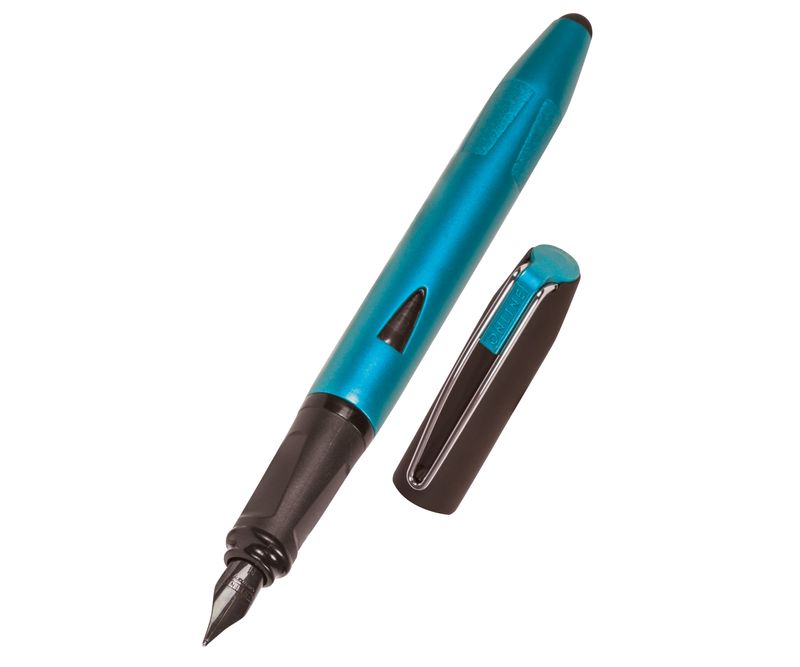 Stilou albastru petrol cu penita din iridiu M, clip metalic si capat pentru ecran tactil