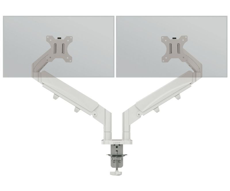 Suport monitor Leitz Ergo cu 2 brațe ajustabile și extensibile, fixare pe birou, gri deschis – ergonomie, confort și spațiu eliberat pe birou