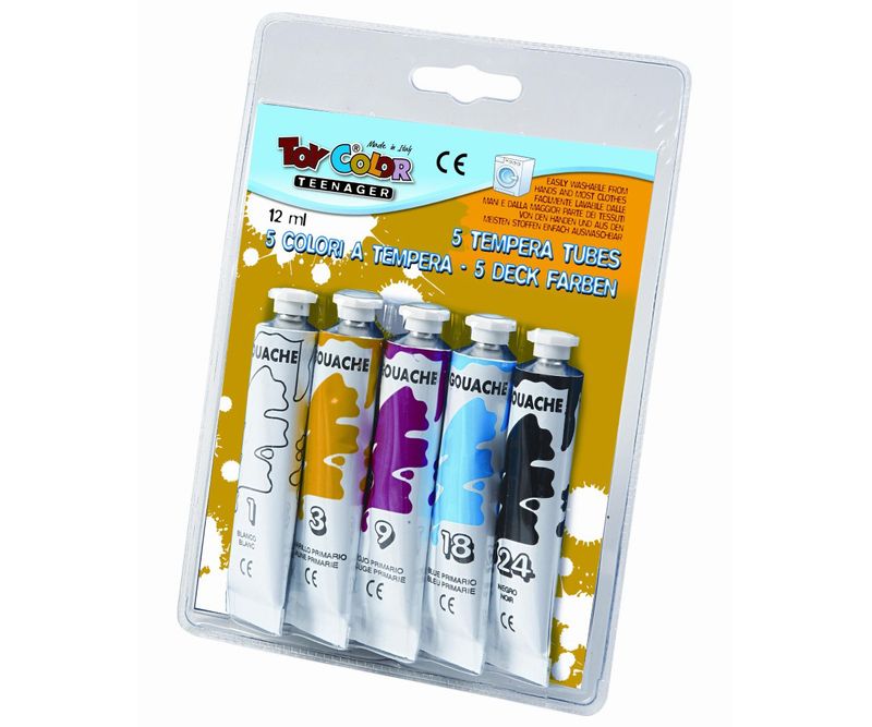 Tempera la tub Toy Color, 12 ml, 5 culori.