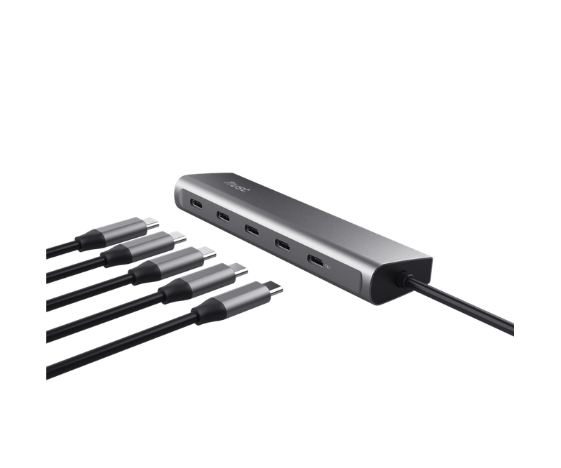 Hub Trust Halyx, 5 porturi USB-C 3.2 gen 1: 1 USB-C 100W PD port / 4 USB-C data ports, USB PD 3.0, gri