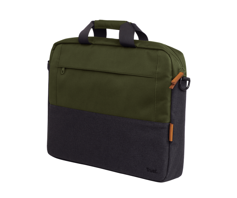 Geanta laptop Trust Lisboa, pentru laptopuri cu diagonala pana in 15.6, 2 compartimente, material POM, RPET Polyester, RPET, volum 2.1 L, verde