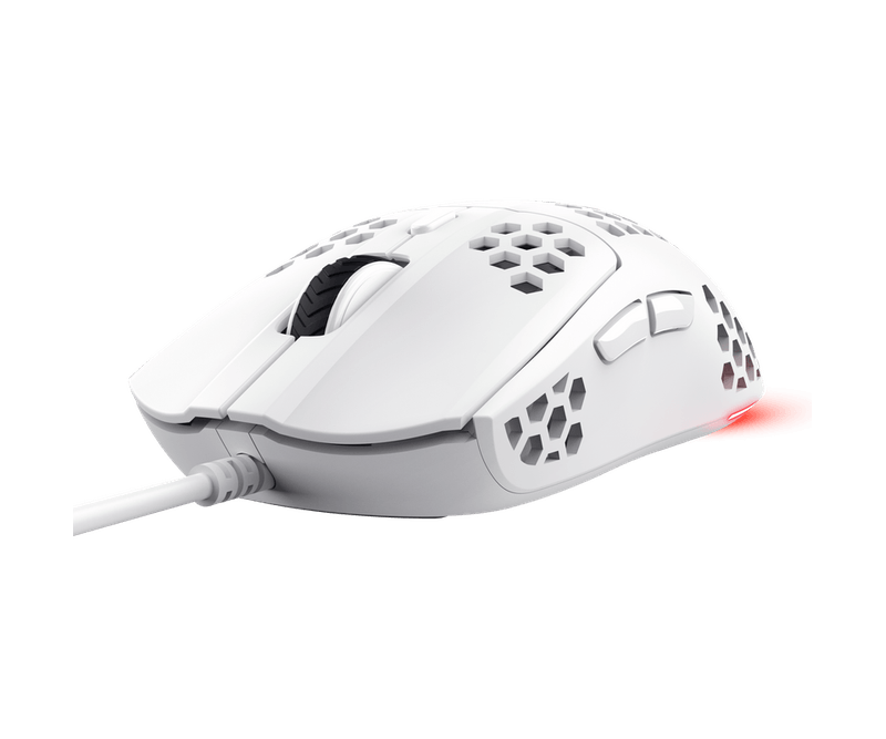 Mouse cu fir Trust GXT 928W Helox, rezolutie maxima 6400 DPI, 6 butoane, interfata USB-A, alb