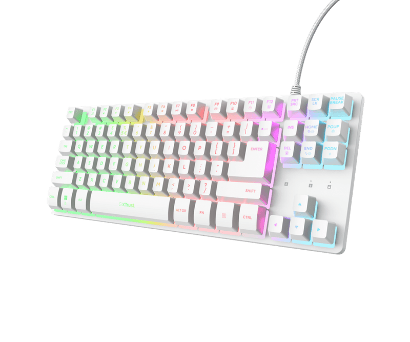 Tastatura Trust cu fir GXT833W Thado TKL, numar butoane 87, interfata USB 2.0, conector USB-A male, compatibila cu PS4, Xbox One, Nintendo Switch, PS5, alb