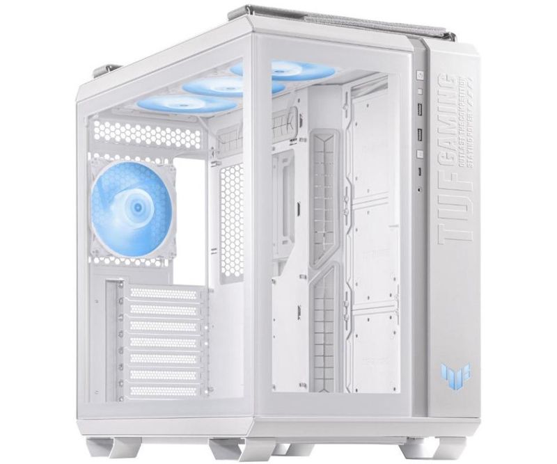 Carcasa ASUS GT 502 TUF GAMING Mid Tower ARGB ALB, Tempered Glass, Sloturi Expansiune 8+3 verticale, Drive Bays: 4x3.5/2.5, Ventilatoare Suportate: 4 (spate: 1x120mm, sus: 3x120mm sau 2x140mm), Ventilatoare Incluse: 4 (spate: 1x120mm, sus: 3x120mm), Format Placa De Baza Suportat: Mini-ITX, Micro-ATX, ATX, Lungime Maxima Placa Video: 400mm, Inaltime Maxima Cooler Procesor: 163mm