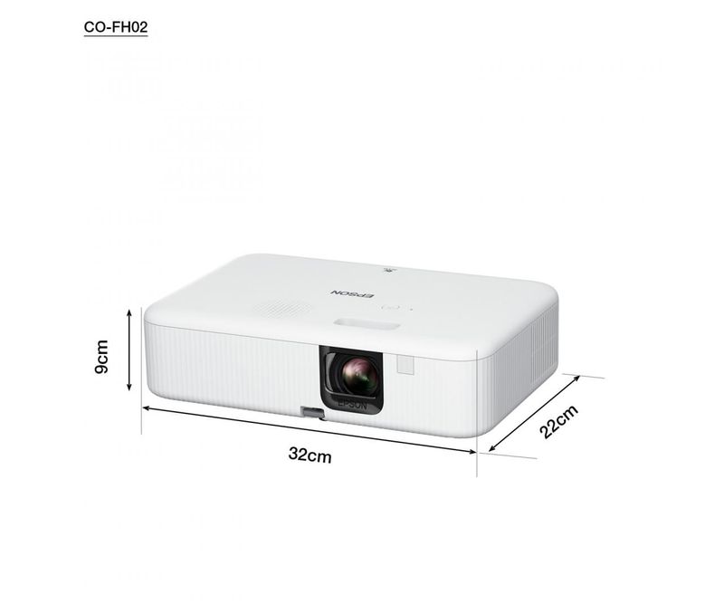 Proiector Epson CO-FH02, 3LCD, 3.000 lumeni/ 2.000 lumeni Ecomode, FHD, 16:9, lampa 6.000 ore/ 12.000 ore Ecomode, corectie ± 30, dimensiune maxima imagine 391, distanta maxima de proiectie 10.4 m, HDMI 1.4, USB 2.0-A, USB 2.0, Android TV, Kensington lock, boxa 5W, MHL audio/video, greutate 2.6 kg, 29- 37 dB, Android TV dongle inclus, telecomanda cu baterii incluse, 2 ani garantie, NU SE MONTEAZA IN TAVAN, culoare alb